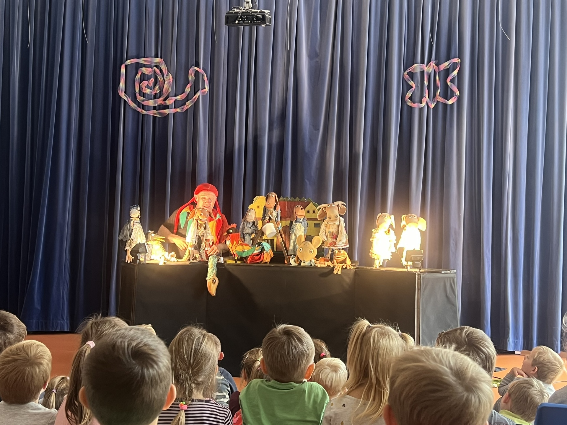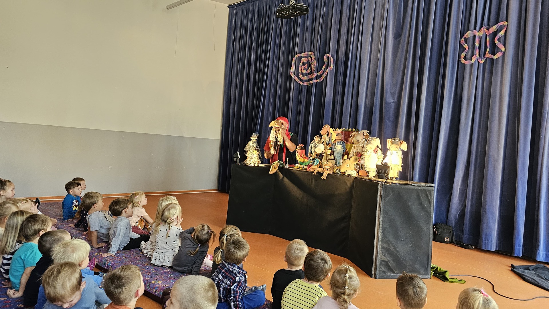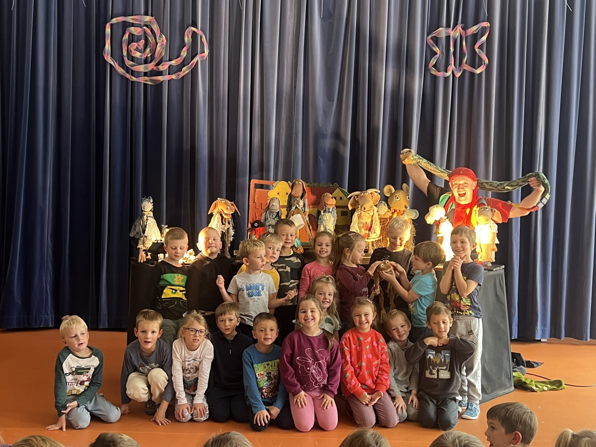 V říjnu nás navštívil pan Aleš Bílek se svým loutkovým divadle s pohádkou "O dvou neposlušných telátkách"